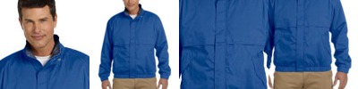 65% polyester, 35% cotton shell; Breathable mesh lining; Yoke vents allow for air movement and easy embroidery access; Elastic cuffs and waist; Self-locking outside pockets; Inside zip pocket; Windguard-covered front-zipper;