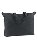 10 oz., 100% cotton canvas; Zipper closure; Interior zippered pocket; Bottom gusset;