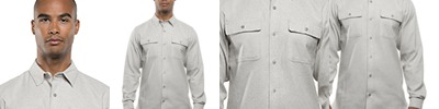 5.4 oz. 80/20 cotton/polyester blend; 2 chest pockets with button flaps; Hem bottom; Button cuffs; Roll up sleeves; Modern Fit;