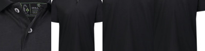 Ribbed, set-in collar and double-needle, cover-seamed neck with lay flat collar