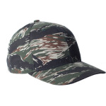 6 Panel mid profile 3.5" high crown with curved visor. Ripstop fabric. Durable, lightweight & breahable. High density tiger camo fabric.