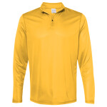 100% polyester wicking knit with color secure(r) technology that helps prevent dye migration * Wicks Moisture * Tear away label * Quarter zip pullover style * Set-in sleeves