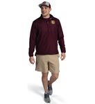 * Dry-Excel(tm) 100% polyester wicking double knit mesh texture * Wicks moisture * Woven label * High collar, half-zip pullover style with zipper garage and collar * Pinhole mesh lined hood with drawcord * Raglan sleeves for maximum mobility * Front zippered valuables pocket * Front pouch pocket * Half-elastic cuffs * Dropped tail