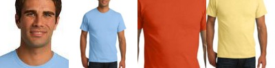5.5 oz (9.1 oz/ly, 186 g) 100% soft spun cotton jersey (fabric blends for specific colors shown below)