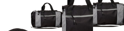 - Durable sporty duffel bag with adjustable web shoulder strap and padded carry handles