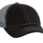 Low profile structured trucker cap with heavy cotton twill front panels and bill, mesh side and back panels, contrasting stitching, and self-fabric strap with velcro adjustable. The cap comes in different colors. One size fits most.