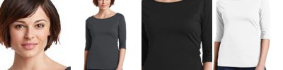 preshrunk 50% polyester/25% combed ring-spun cotton/25% rayon • 4.7 oz. • 30 singles • semi-fitted contoured silhouette with side seams • deep scoop neck with self-fabric binding • 1/2-length sleeves • curved bottom hem • double-needle sleeve and bottom hems • tear-away label • Sizes: XS-2XL