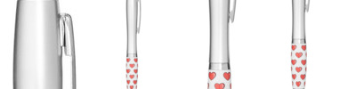 - Retractable curvy plastic barrel ballpoint pen with heart/healthcare theme stock art grip