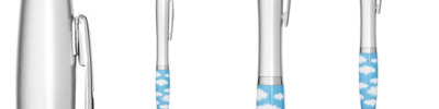 - Retractable curvy Plastic barrel ballpoint pen with cloud or technology theme stock art comfort grip
