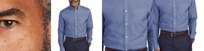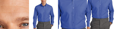 Elevate your business-casual vibe with a budget-friendly shirt that's polished and professional. The subtle two-color nailhead pattern adds a touch of refinement. 4-ounce, 60/40 cotton/recycled polyester Easy care Button-down collar Left chest pocket Center back pleat Dyed-to-match pearlized buttons Rounded adjustable barrel cuffs