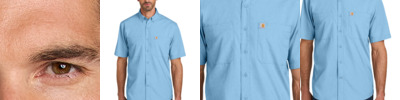 Outwork everything under the sun. Engineered with an emphasis on sweat-fighting and sun protection, this work shirt is ideal for the warmest days. 2.9-ounce, 71/29 polyester/nylon chambray Sun Defender UPF 50+ UV protection Carhartt Force ® works harder to fight sweat, dry fast and stop odor FastDry ® technology wicks away sweat to keep you cool Rugged Flex ® technology for ease of movement Button-down collar Mesh-lined vent at center back for flow-through ventilation Two chest pockets with a pen stall Carhartt label sewn on left chest pocket Relaxed fit